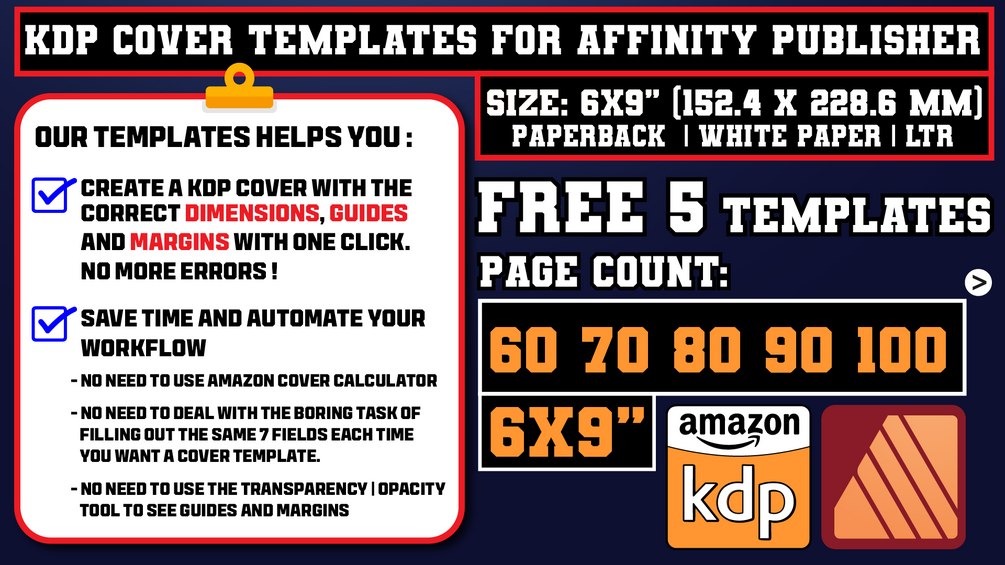 Free KDP Cover Templates Bundle for Affinity Publisher | Size: 6x9" | Paperback | White Paper